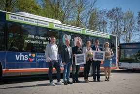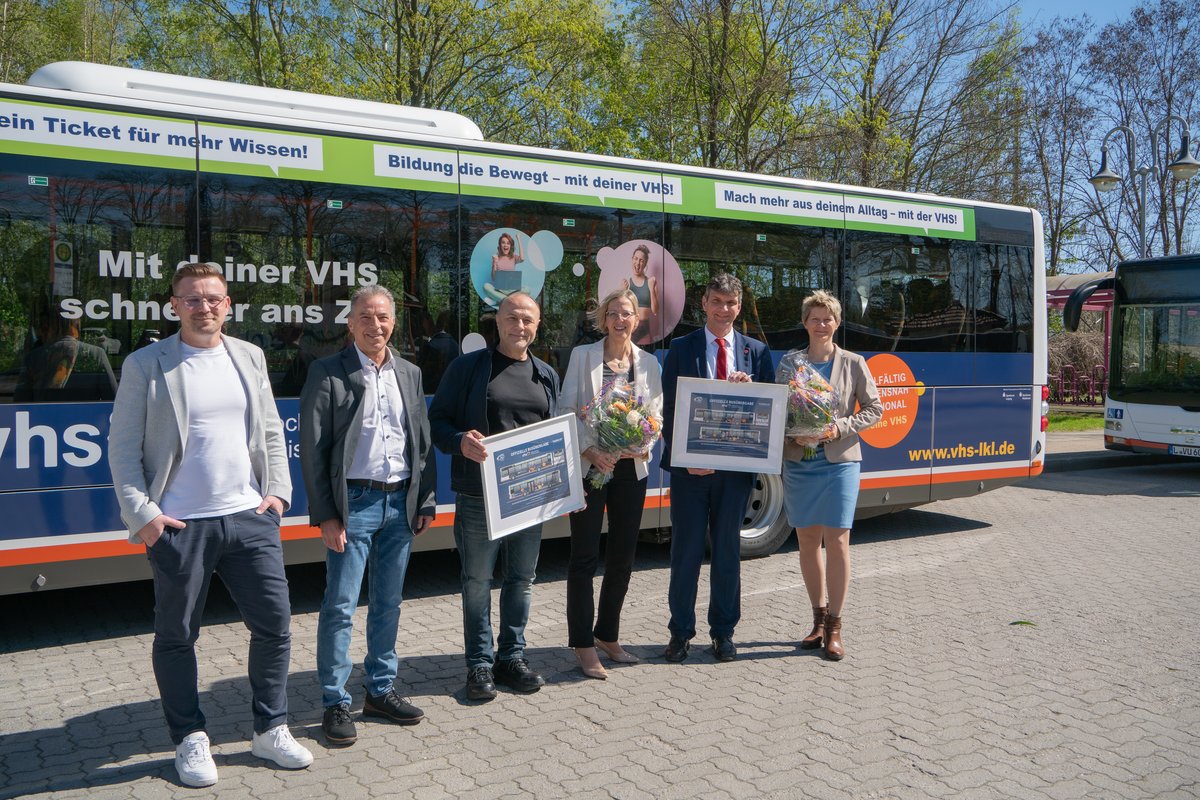 Am Busbahnhof Borna übergaben die Projektpartner im Beisein der Hausspitze des Landkreises Leipzig einen im vhs-Design gestalteten Bus symbolisch an den Kommunalen Eigenbetrieb „Bildung und Kultur des Landkreises Leipzig“. Zeitgleich nahm ein zweiter Bus in der Region Muldental seinen Dienst im regulären Fahrbetrieb auf.