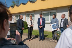 Bei bestem Frühlingswetter wurden am 23. April 2026 zwei neue Kampagnenbusse der Volkshochschule Landkreis Leipzig feierlich in Dienst gestellt.